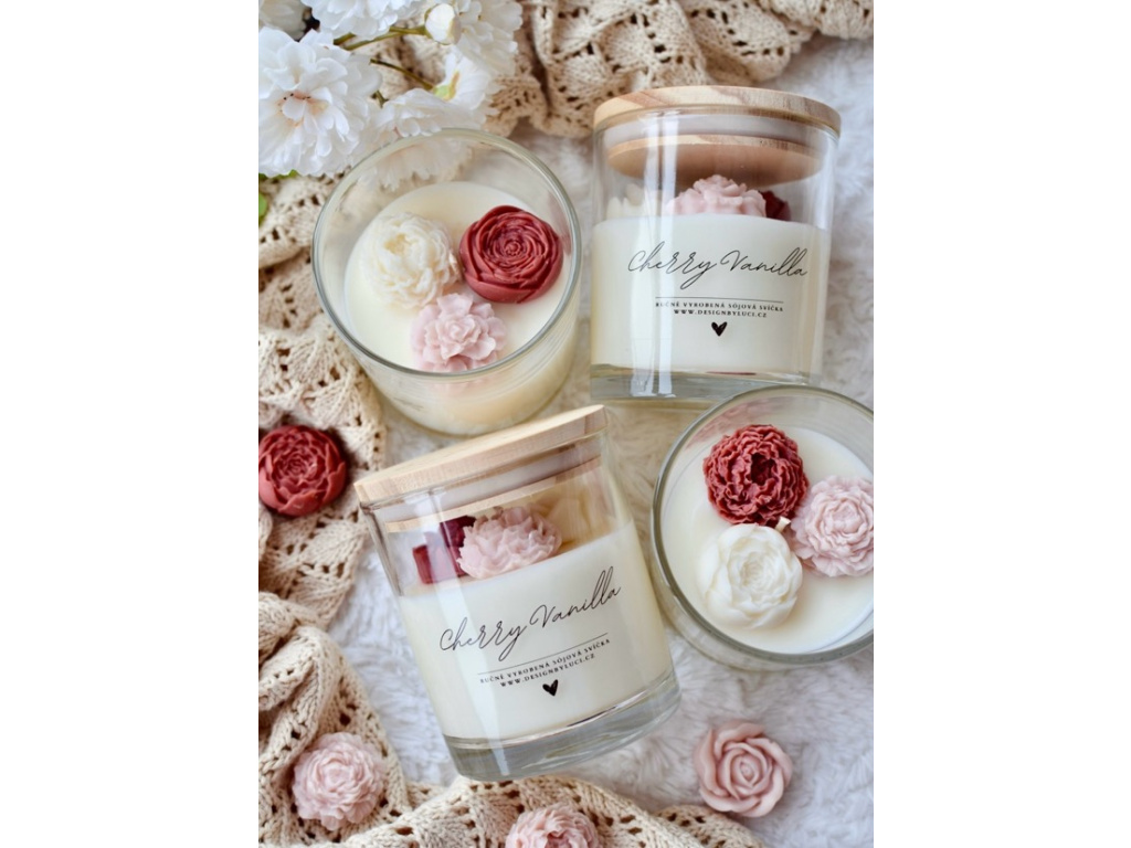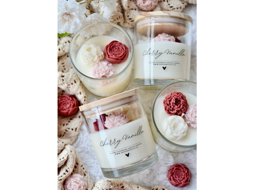 Ručně vyrobená sójová svíčka s vůní třešní a vanilky